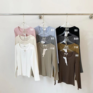 不拿后悔!十三行R*S2025秋款简约u领弹力显瘦正肩体恤打底女上衣