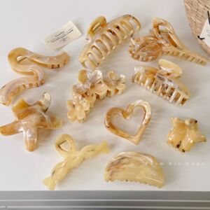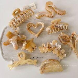 韩版黄咖色大理石纹理个性百搭抓夹设计感海星鸡蛋花时尚发饰新款