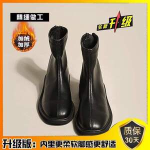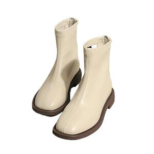 法式秋季高跟鞋女2025年显高切尔西瘦瘦靴英伦风方头白色马丁靴女