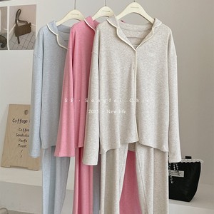 3728撞色雪花翻领睡衣套装秋冬新款长袖宽松亲肤纽扣家居服二件套