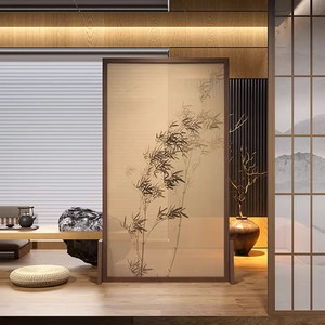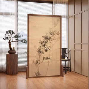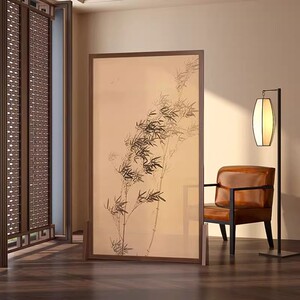 新中式宋氏美学实木屏风隔断客厅民宿装饰茶室分隔墨竹图移动座屏