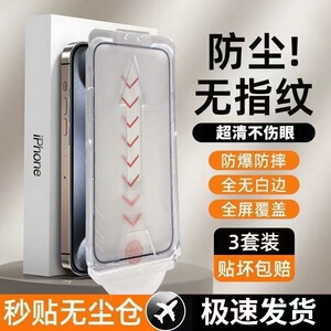 跨境无尘仓苹果17Pro高清钢化膜适用16promax除尘定位秒贴防窥膜