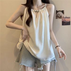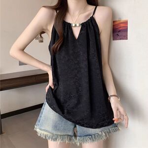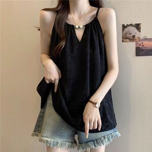 大码设计感挂脖吊带背心女夏季2025新款胖mm宽松显瘦系带无袖上衣