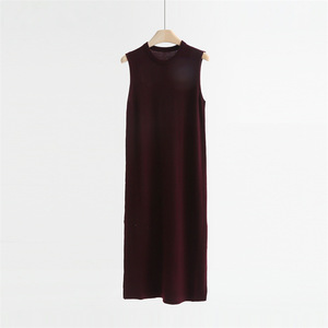 简约百搭14针羊毛圆领针织连衣裙秋冬无袖背心裙打底衫内搭女6929