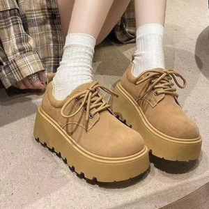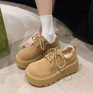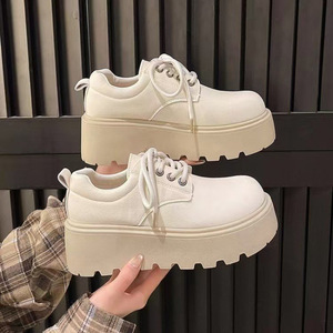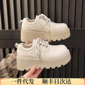 复古白色厚底增高系带勃肯单鞋女2025夏季新款百搭圆头大头乐福鞋