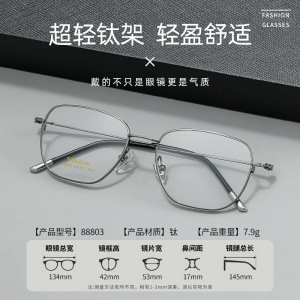 大脸极简金丝无感细边框7g纯钛商务行政风眼镜框架方形全框X88803