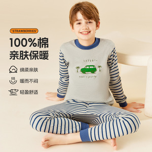 儿童秋冬纯棉保暖秋衣秋裤套装家居服中大童a类男女童棉毛衫睡衣