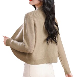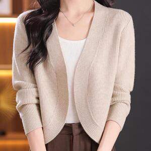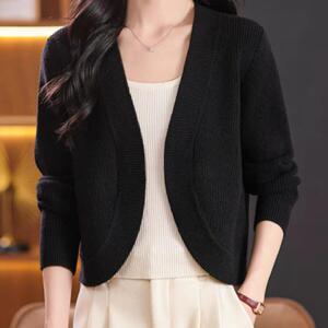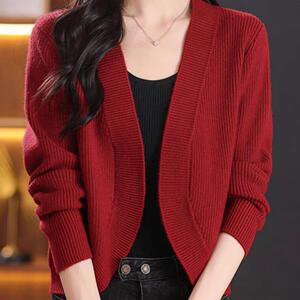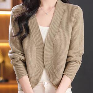秋冬新款气质轻熟风纯色无扣针织衫女秋冬宽松时尚毛衣短款外套女