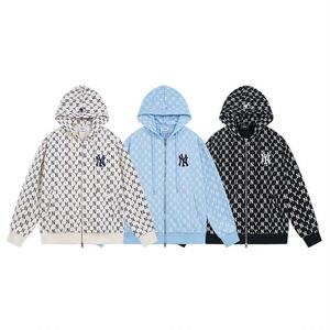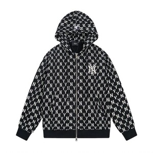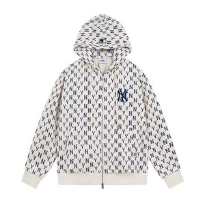 高版本潮牌MLB复古老花满印拉链开衫男女宽松休闲百搭连帽卫衣