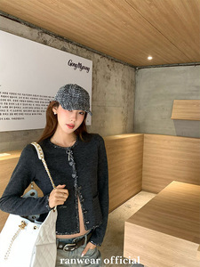 Ranwear Paris千金 法式温柔气质小香设计感亮片织带针织毛衣开衫