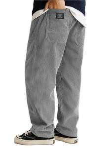 2025独立站秋冬新款男士休闲宽松灯芯绒字母刺绣标口袋运动长裤
