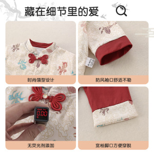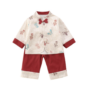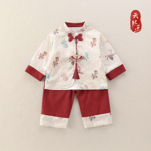 婴幼儿新中式分体套装春秋款宝宝百天抓周生日礼服中国风汉服爬服