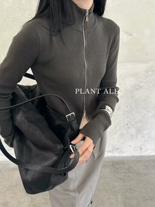 立领修身双头拉链针织开衫一30%羊毛显瘦薄款毛衣打底外穿女P5031
