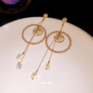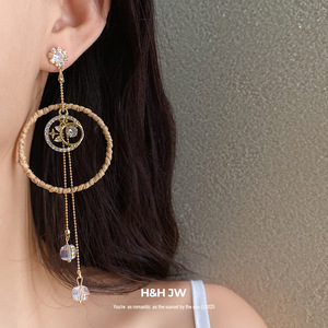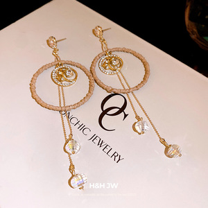 银针锆石圆形镂空玻璃流苏耳环韩版ins时尚耳钉轻奢高级感耳饰女