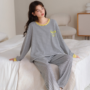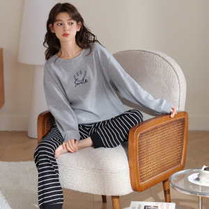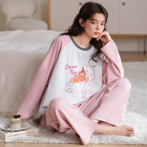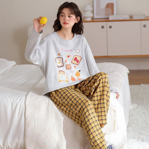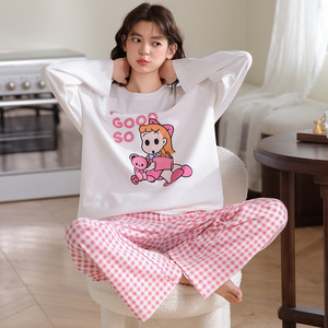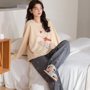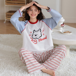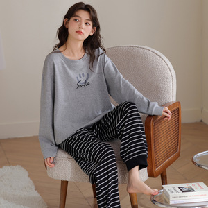 睡衣女春秋季纯棉长袖2025新款秋冬卡通笑脸可外穿少女家居服套装