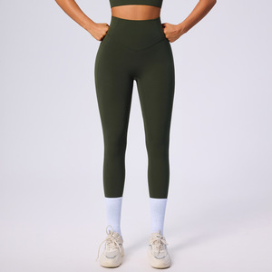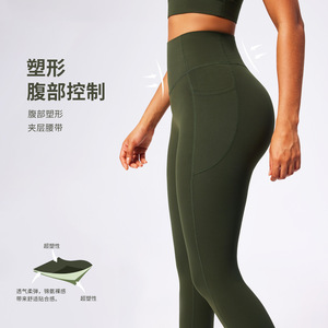 亚马逊新款口袋瑜伽裤紧身弹力塑形运动长裤女高腰收腹提臀健身裤