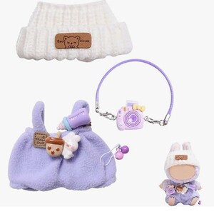 一二三代拉布布衣服坐坐派对娃衣奶瓶背带裤相机套装labubu娃衣