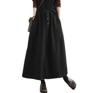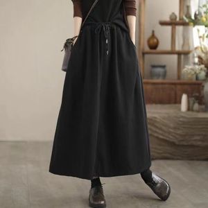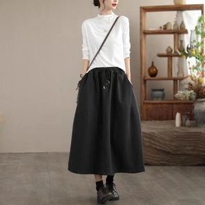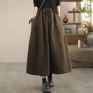 毛呢半身裙女秋冬高腰显瘦气质长裙纯色百搭松紧腰抽绳A字裙