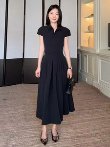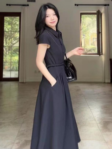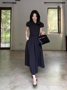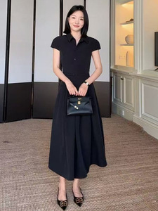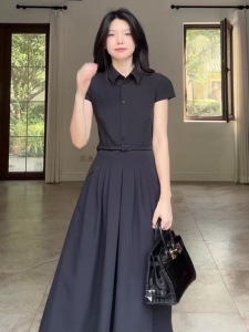 2025年新款气质通勤polo领简约收腰显瘦连衣裙夏季新款长裙送腰带