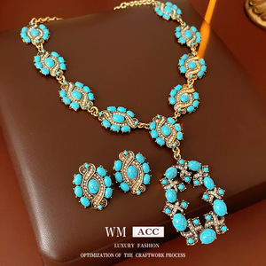 中古vintage镶钻椭圆套装复古宫廷风时尚百搭首饰气质小众高级感