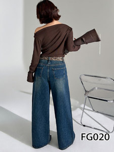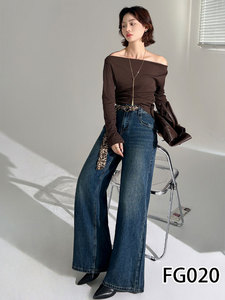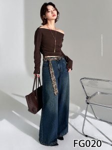 美式时髦豹纹腰带深蓝牛仔拖地裤2025新款宽松显瘦长裤日韩休闲
