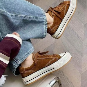 欧洲站2025秋季新款真皮厚底板鞋女系带磨砂松糕鞋百搭欧货女鞋潮