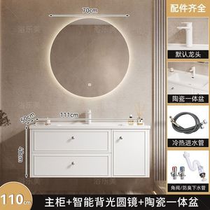 智能背光圆镜丨不能储物-110CM柜体+陶瓷一体盆+五金配件
