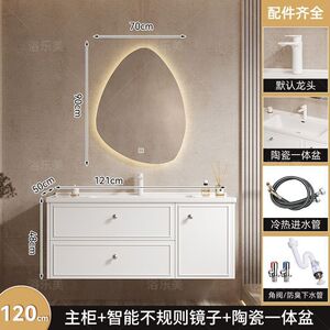 智能圆弧储物全镜柜-120CM柜体+陶瓷一体盆+五金配件