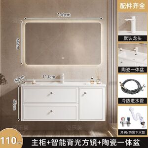 智能背光方镜丨不能储物-110CM柜体+陶瓷一体盆+五金配件