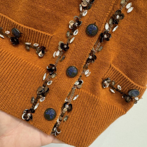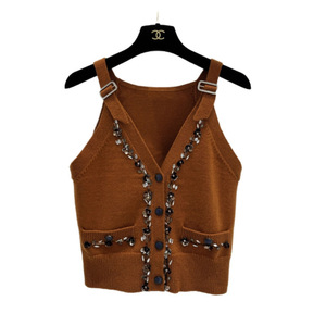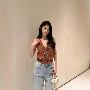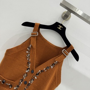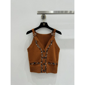 深圳南油货~高版本25早秋减龄小香风亮片钉珠拼接V领吊带针织