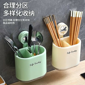 创意吸盘壁挂筷子筒多功能免打孔强力上墙沥水通风厨房家用收纳盒