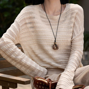 欧货雅2025夏季长袖针织衫轻薄透气冰丝罩衫上衣女
