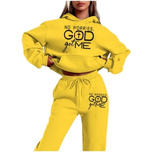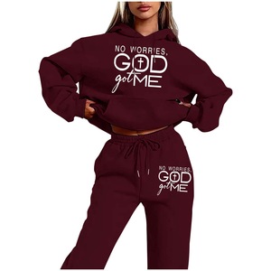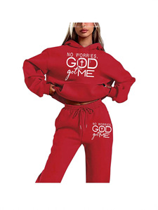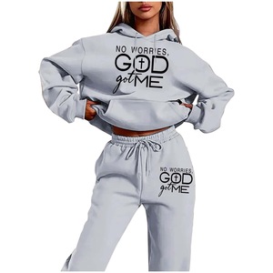 亚马逊新款卫衣套装欧美印花字母女士上衣长裤跨境休闲运动帽衫