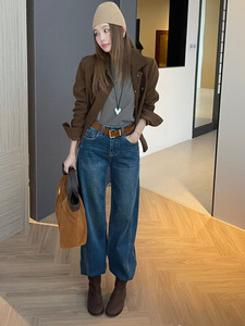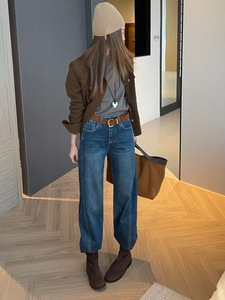 秋上新TOP 欧制韩版巨遮胯巨显瘦四面弹微弯刀裤牛仔裤配腰带5757