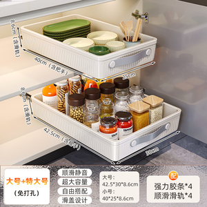 橱柜托盘厨房内拉篮抽屉式碗柜碗碟篮抽拉式置物架下水槽深收纳盒