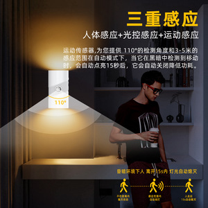 跨境智能人体感应灯充电式磁吸墙壁灯温馨小夜灯过道玄关家居筒灯