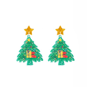 新款跨境圣诞节新年亚克力耳环欧美圣诞树圣诞袜礼盒星星简约耳饰