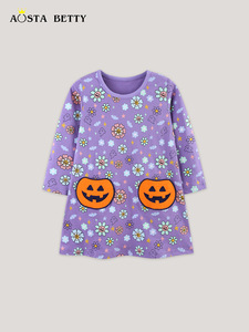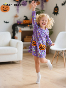 欧美风儿童裙子25秋季新品圆领女童连衣裙万圣节贴布长袖童裙跨境