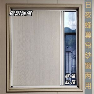 日夜两用蜂巢帘折叠推拉隐形遮光窗帘隔热保暖防蚊通风免打孔
