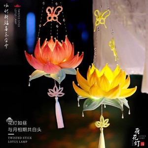 中秋节灯笼手工diy材料包荷花灯手提发光莲花灯自制小兔子灯笼批