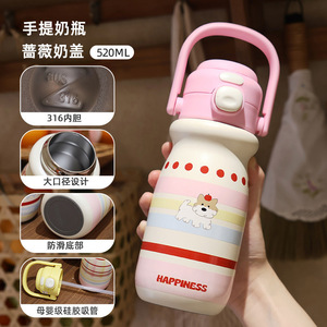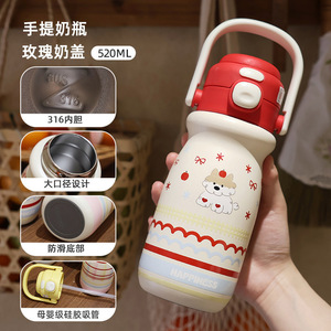 316不锈钢可爱学生水杯高颜值女生双饮保温保冷杯弹跳盖防漏拎拎