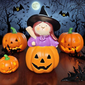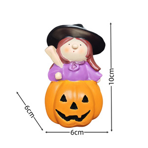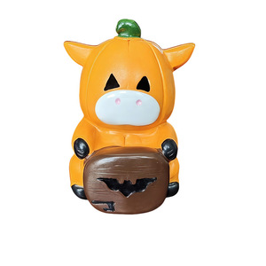 跨境新品万圣节南瓜女巫牛摆件节日氛围装饰树脂搞怪南瓜牛工艺品