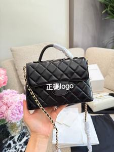 2025春夏25p高级感时尚皮穿链手柄kelly菱格链条单肩斜跨手提包