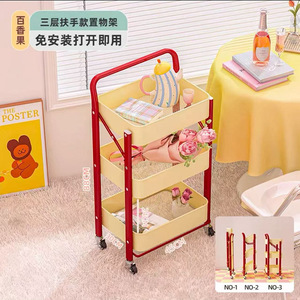 多巴胺折叠小推车移动零食拼色置物架卧室储物架子玩具手推收纳架