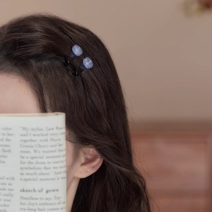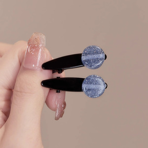 小号蓝色星空侧边鸭嘴夹蝴蝶结发卡高级感前额碎发夹子迷你刘海夹