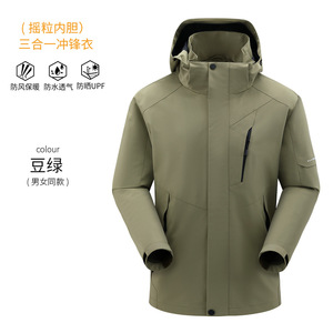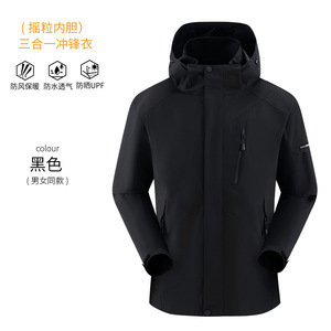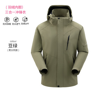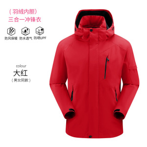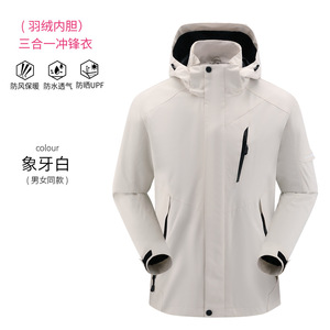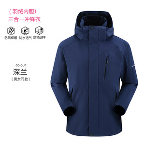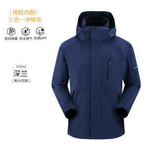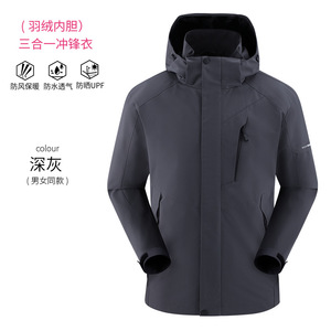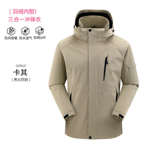 冲锋衣定制印logo三合一抓绒羽绒内胆户外防风防水透气外套工作服