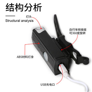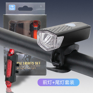 跨境自行车前灯尾灯套装USB充电三挡可调节快拆式儿童车夜骑装备