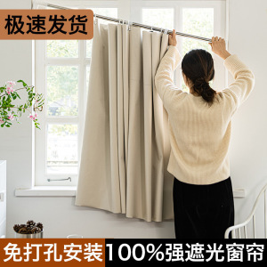 防晒窗帘卧室遮光布飘窗出租屋伸缩杆免打孔安装阳台遮挡帘子批发