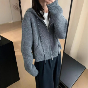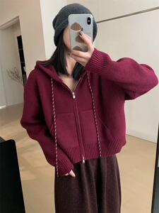 气质休闲连帽加厚短款开衫2025秋冬新款韩版淑女风显瘦上衣针织衫
