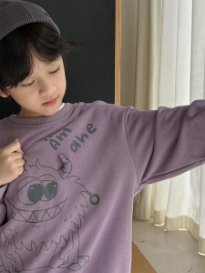 新款儿童时尚2025秋季童装胸前童趣印花小众长袖宽松日常套头卫衣